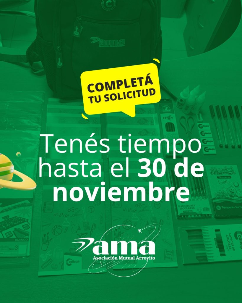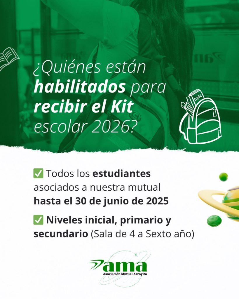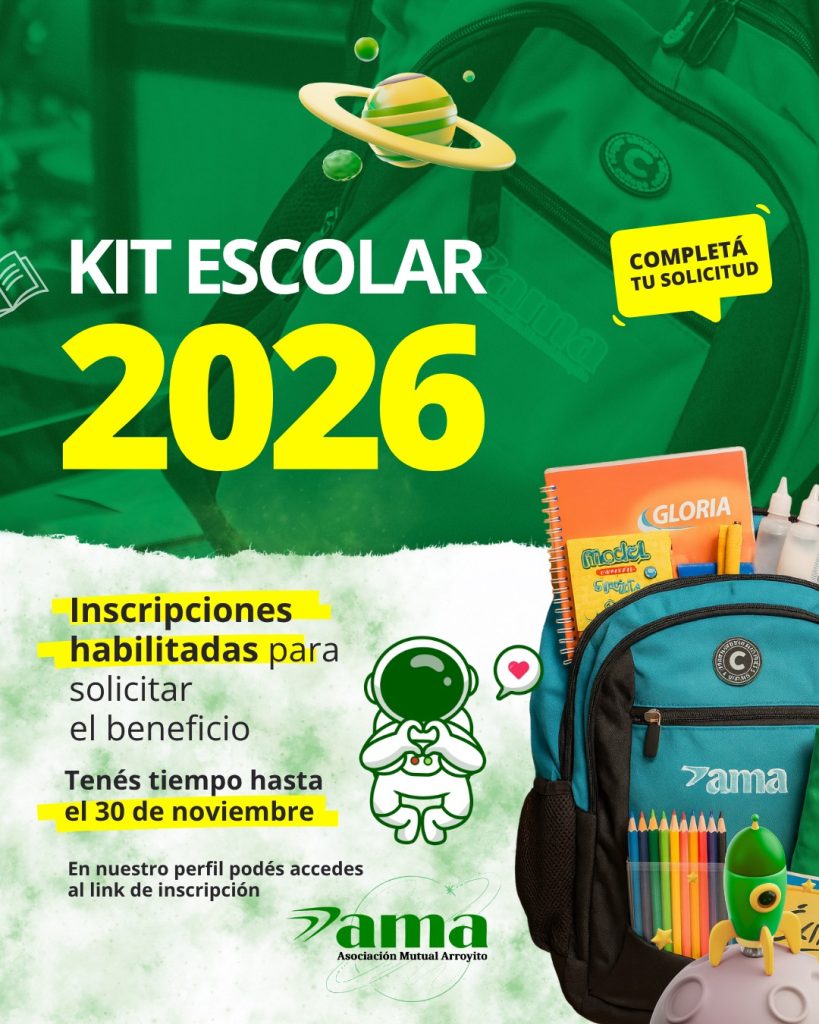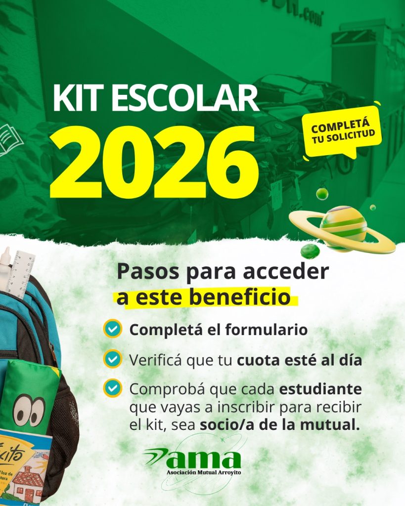 Ingresá ahora: https://forms.gle/uxi4MUys6W3HccLN9, completá tu inscripción y asegurá el kit para el próximo ciclo lectivo. Para más información o consultas enviá la palabra KIT al 3576 467099 (InfoAma)